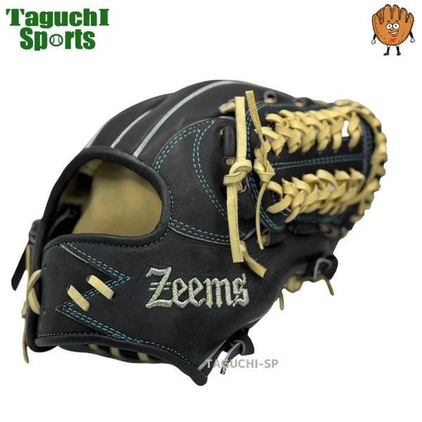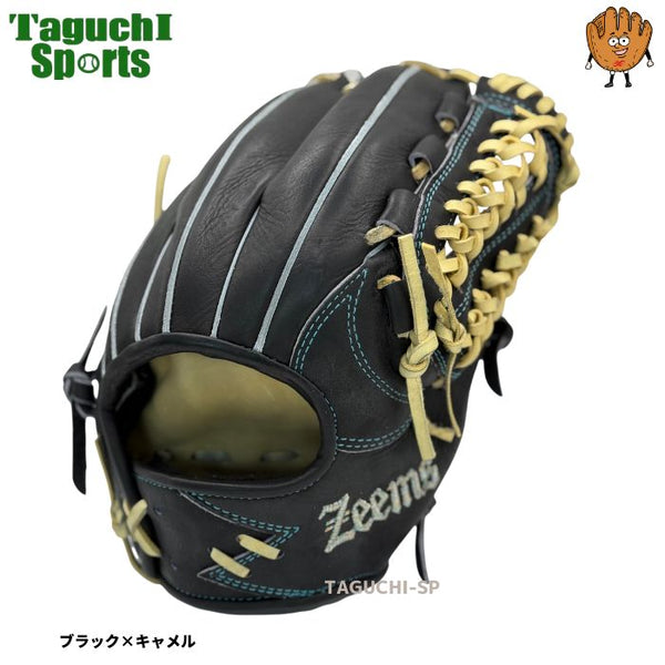 NEW【メーカー湯もみ型付け済】【選手に合わせて型を整えて再度当店で型付けします!】ジームス(ZEEMS)  少年軟式用グラブ グラブサイズ少年用大 16JDN5  直刺繍ラベル 右投げ ブラック×キャメル
