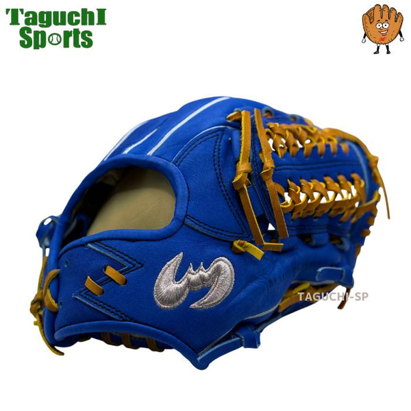 NEW【メーカー湯もみ型付け済】【選手に合わせて型を整えて再度当店で型付けします!】【2026年モデル】ジームス(ZEEMS)  限定 少年軟式用グラブ 少年軟式用グローブ 16DJN5 直刺繍コウモリラベル 右投げ 大型 ブルー×タン紐 小学校5年~中学生向け