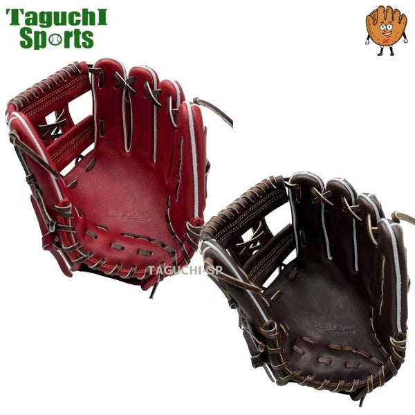 当店で最も人気の高いシングル捕球に強い角ばったグラブです。今宮選手の様に小指2本でも5本指でもガッチリ掴めることが人気の秘密です。指が短くなることで手の小さい選手にも最適なバランスに調整されています。 |